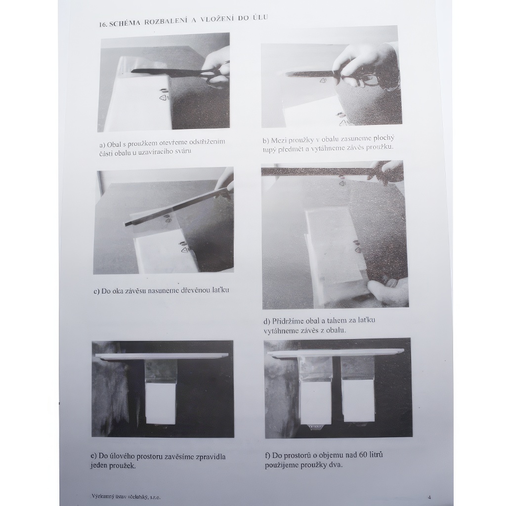 Il nostro istituto di ricerca apistica ha sviluppato le tavolette evaporanti Formidol (nome derivato da formic acid - acido formico e Dol presso Libčice n.Vlt.). Un piccolo svantaggio di queste tavolette è che la velocità di evaporazione dell'acido formico è irregolare. Sarebbe desiderabile un'evaporazione uniforme per un periodo funzionale più lungo.