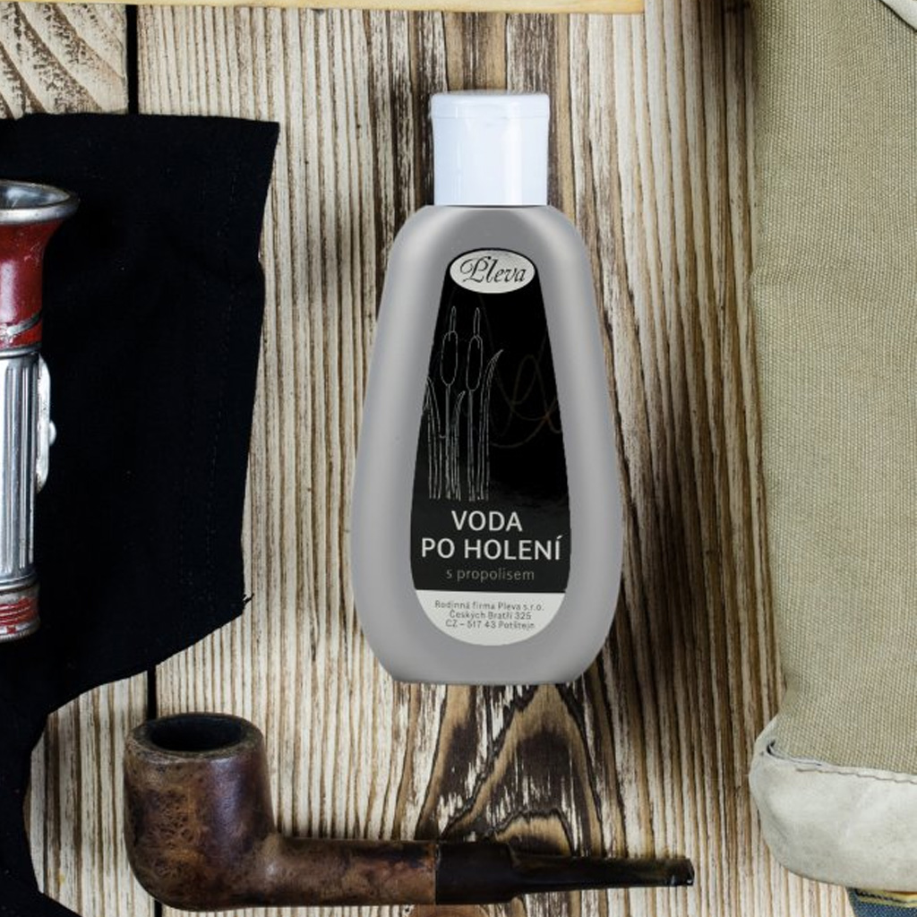 La rasatura è sempre uno stress per la pelle: la lama insieme ai peli rimuove anche parte dello strato superficiale della pelle e possono formarsi piccole microlesioni. Proprio queste causano spesso pizzicore, arrossamenti o punti infiammati. Un buon dopobarba aiuta a calmare rapidamente la pelle, purificarla e favorire la rigenerazione. Come dice il fondatore dell'azienda familiare Milan Pleva: "Anche un viso segnato dal vento ha bisogno di cure e trattamenti – del resto, brufoli e ferite rosse non contribuirebbero molto all'aspetto virile. La propoli lenisce meravigliosamente le irritazioni e favorisce la guarigione di piccole ferite, gli altri ingredienti poi ammorbidiscono e detergono la pelle in modo appropriato. Un dopobarba eccellente per ogni tipo di pelle."