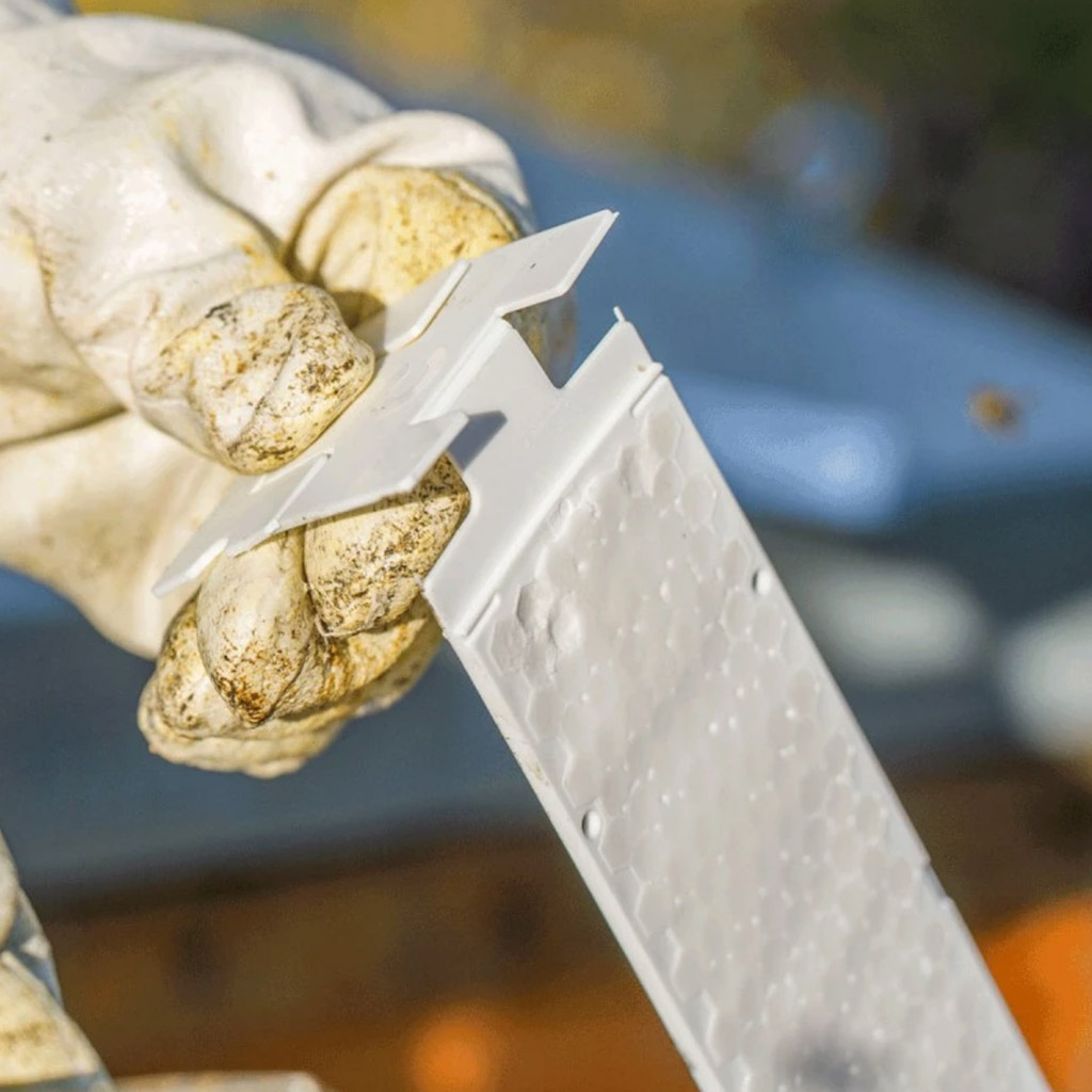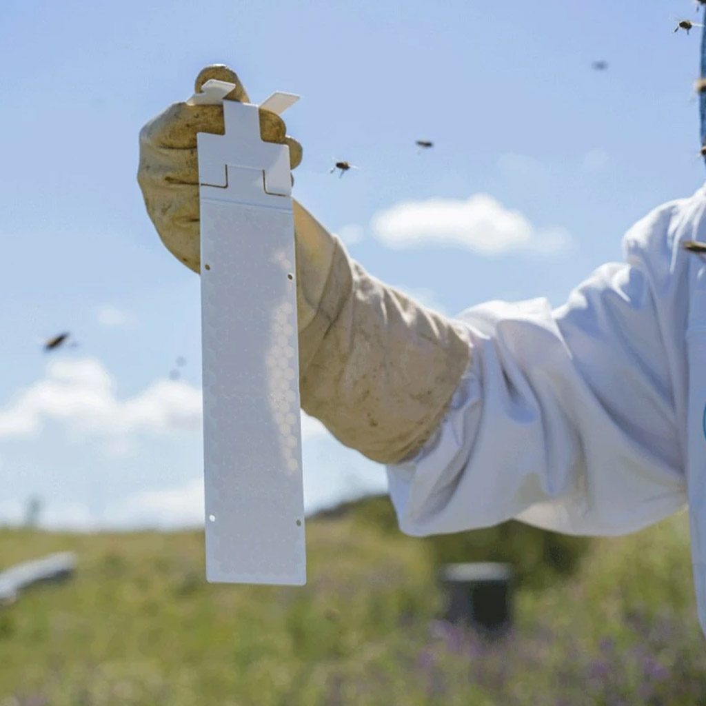 L'applicazione è semplice anche per gli apicoltori principianti. In un'arnia (nel nido di covata) appendete 2 strisce negli spazi tra i telaini, idealmente nei punti con maggiore attività delle api. Non accorciate né tagliate le strisce – regolate la lunghezza solo piegandole secondo la costruzione dell'arnia. Lasciatele nell'arnia per un massimo di 6 settimane.