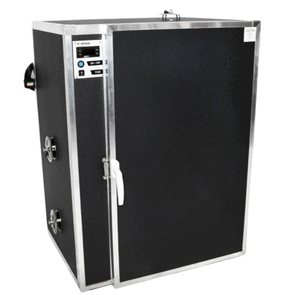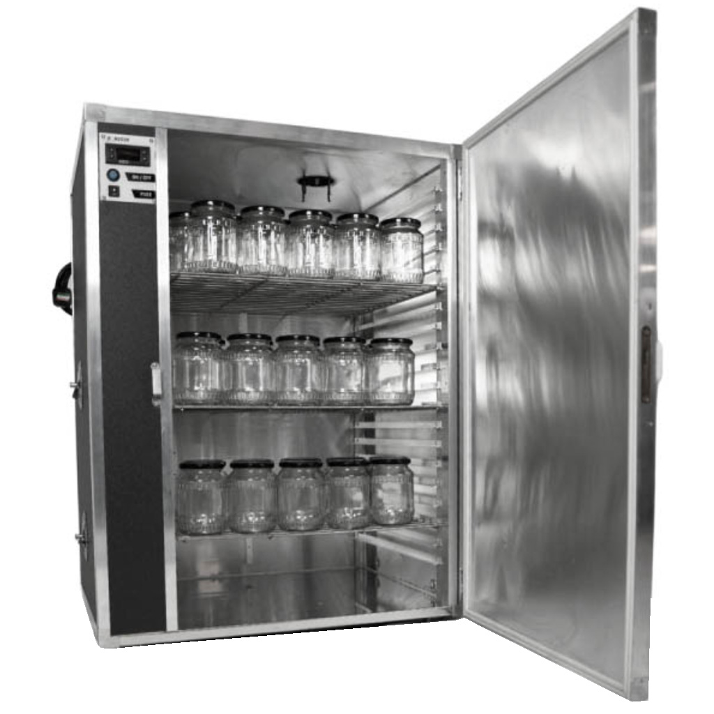 Gli elementi riscaldanti insieme a tre potenti ventilatori sono posizionati sul lato della camera, affinché il calore si distribuisca uniformemente in tutto lo spazio. Per la decristallizzazione si raccomanda di impostare la temperatura a circa 40 °C fino a max. 50 °C e chiudere le aperture di ventilazione regolabili in acciaio inox. Il miele si riscalda poi gradualmente in tutto il volume. La durata del ciclo si aggira solitamente tra le 12 e le 24 ore a seconda del tipo di miele e delle dimensioni dei contenitori. Durante l'essiccazione del polline è sufficiente ridurre la temperatura a circa 35 °C - 40 °C.