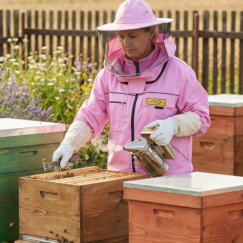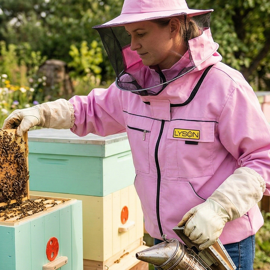 È finita l'epoca in cui gli apicoltori avevano a disposizione solo le classiche tute bianche. Questa casacca apistica della collezione Color Line porta un aspetto moderno nel colore viola originale, che colpisce a prima vista. Tuttavia rimane la cosa più importante: un'attrezzatura affidabile per il lavoro sicuro presso gli alveari. Il materiale resistente e allo stesso tempo traspirante con grammatura di 185 g/m² offre comfort anche durante le ispezioni estive degli alveari. La base viola è completata da bordature nere marcate, zip e rete sul cappello – abbigliamento apistico in cui vi sentirete sicuri e apparirete curati.