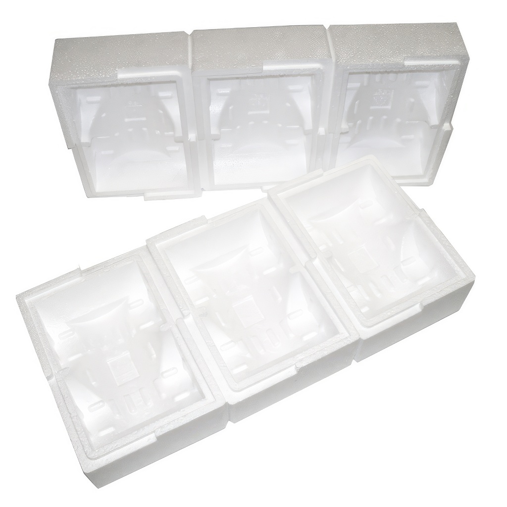 Contenitori in polistirolo per il facile trasporto del miele. Pratico contenitore in polistirolo per tre barattoli da un chilogrammo o per sei barattoli da mezzo chilogrammo.