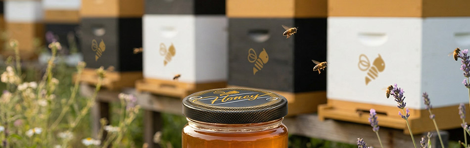 Il miele genuino dei propri alveari merita un confezionamento che ne sottolinei la qualità. Che vendiate il miele direttamente dall'apiario, ai mercati, o lo prepariate come regalo, spesso è proprio l'aspetto del vasetto a determinare la prima impressione. L'elegante coperchio a vite con motivo Honey in moderno nero opaco distinguerà i vostri vasetti dalla produzione comune e conferirà al miele invasettato un carattere professionale e premium.