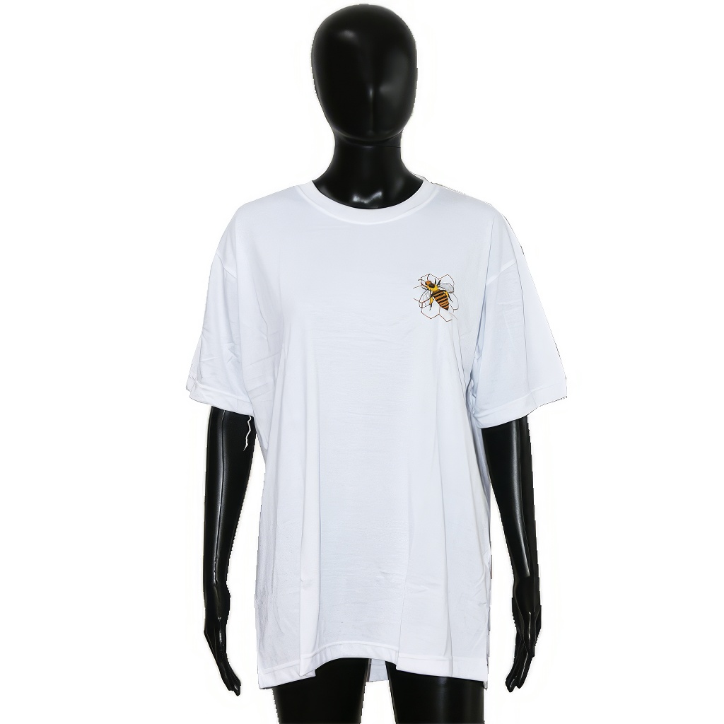 Realizzate in 100% puro cotone di qualità 180 g. Magliette bianche con scollo rotondo e stampa di api.