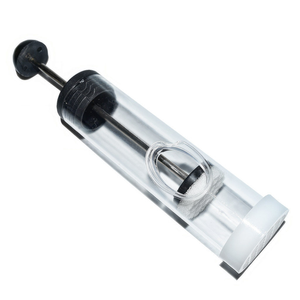 Questo strumento ben progettato combina due funzioni in una: permette di catturare delicatamente la regina direttamente dal favo senza contatto diretto e successivamente di fissarla in modo sicuro per la marcatura. Questo riduce al minimo assoluto lo stress e il rischio di lesioni. Il corpo cilindrico in plastica trasparente offre un controllo visivo costante sulla posizione della regina, permettendovi di lavorare in modo molto più calmo e preciso. La parte fondamentale è il pistone speciale con cuscinetto in schiuma morbida (gommapiuma), che quando preme la regina contro la griglia fornisce una pressione ottimale e protegge perfettamente la regina dallo schiacciamento.