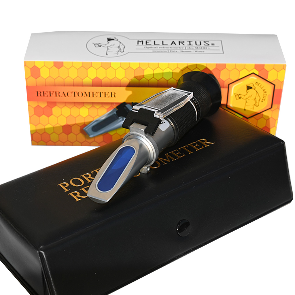 Questo rifrattometro è fornito dal rinomato specialista tedesco di attrezzature apistiche Mellarius. La denominazione „Plus" qui non è solo decorativa – si tratta di un'esecuzione più sofisticata con ottica di migliore qualità e corpo più resistente rispetto ai comuni modelli base.