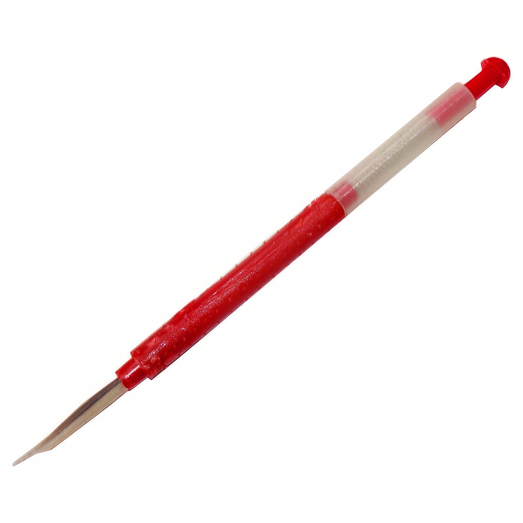 Il corpo del cucchiaino è in plastica resistente e funziona secondo il principio di una penna a scatto meccanica. Si preleva la larva sull'estremità flessibile e premendo il pistone si estende la spatola, che la rilascia delicatamente nella cella preparata. Il traslarvo diventa così più rapido, più pulito e più gestibile anche per gli allevatori di regine principianti.