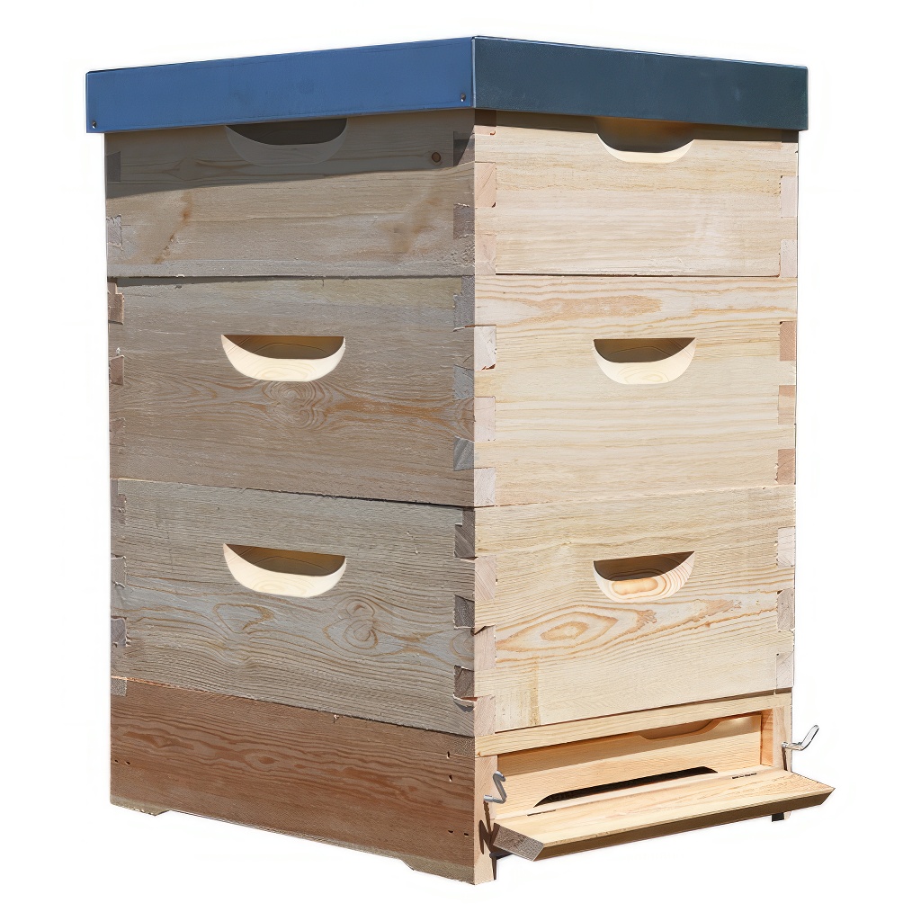 L'arnia completa Langstroth è composta da un fondo antivarroa Langstroth (altezza 10 cm), 3 melari Langstroth 3/4 e un coperchio. Si tratta di una struttura interamente in legno non coibentata. I melari vengono forniti smontati (facili da assemblare) e non hanno la porticina di volo (può essere forata a piacere secondo le vostre esigenze).