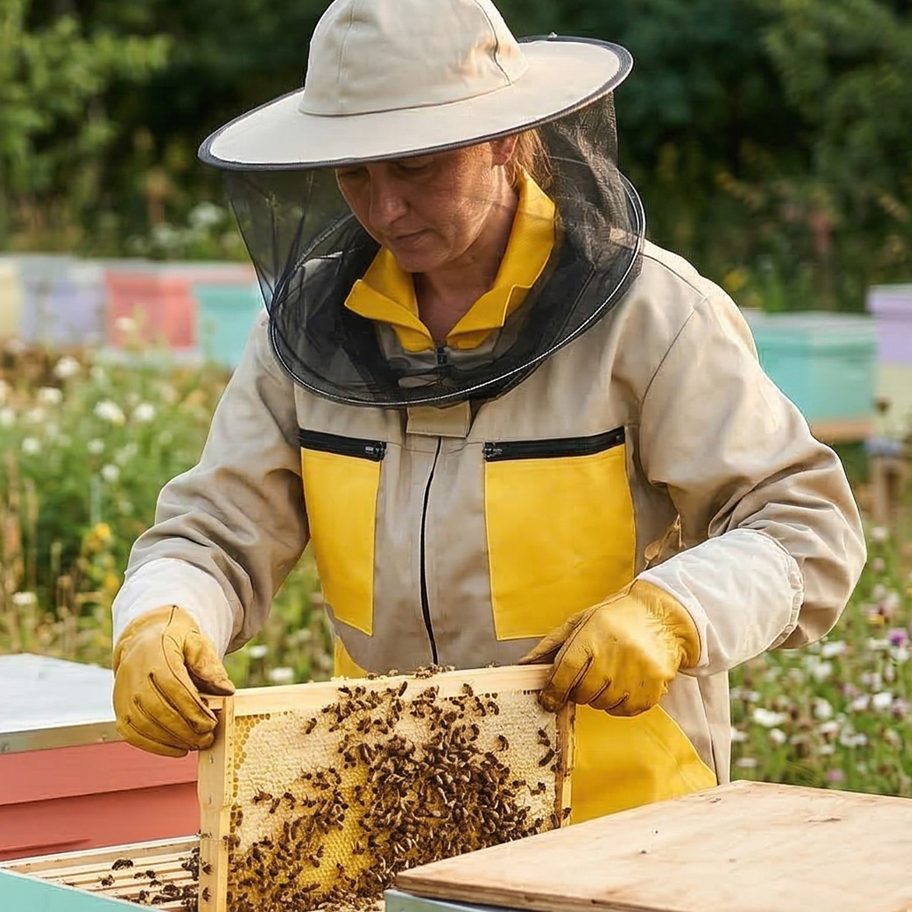 La pratica casacca da apicoltore con cappello protettivo è disponibile nelle taglie dalla S alla XXXL. Durante il lavoro in apiario è fondamentale la calma, la sicurezza e una protezione affidabile. Questo indumento apicolo aiuta a proteggere il corpo durante la normale manipolazione delle famiglie di api e contribuisce a un maggiore comfort durante le ispezioni degli alveari, la smielatura e altre attività apistiche. La casacca è realizzata con materiali resistenti che riducono il rischio di punture e garantiscono al contempo una buona durata del capo.