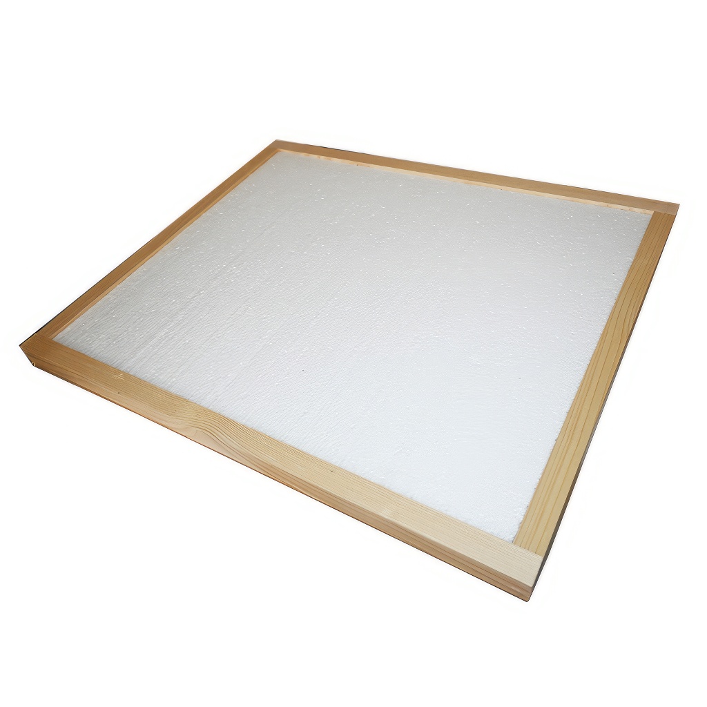 Coperchio in masonite per arnia Langstroth. Struttura in legno del coperchio con parti in masonite e isolamento in polistirolo di 2 cm di spessore.