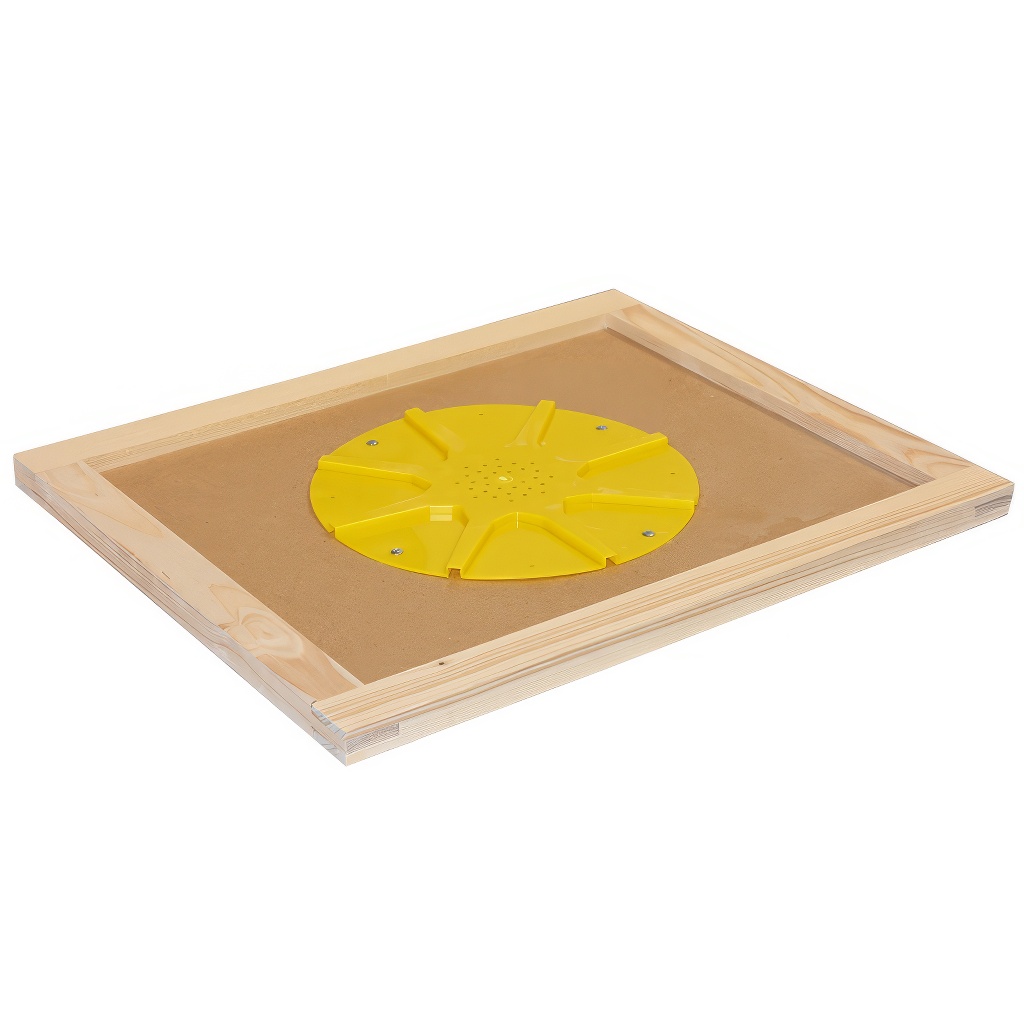 Al centro del pannello HDF c'è un foro circolare per l'escludiapi con diametro di 78 mm che permette alle api l'accesso all'escludiapi.