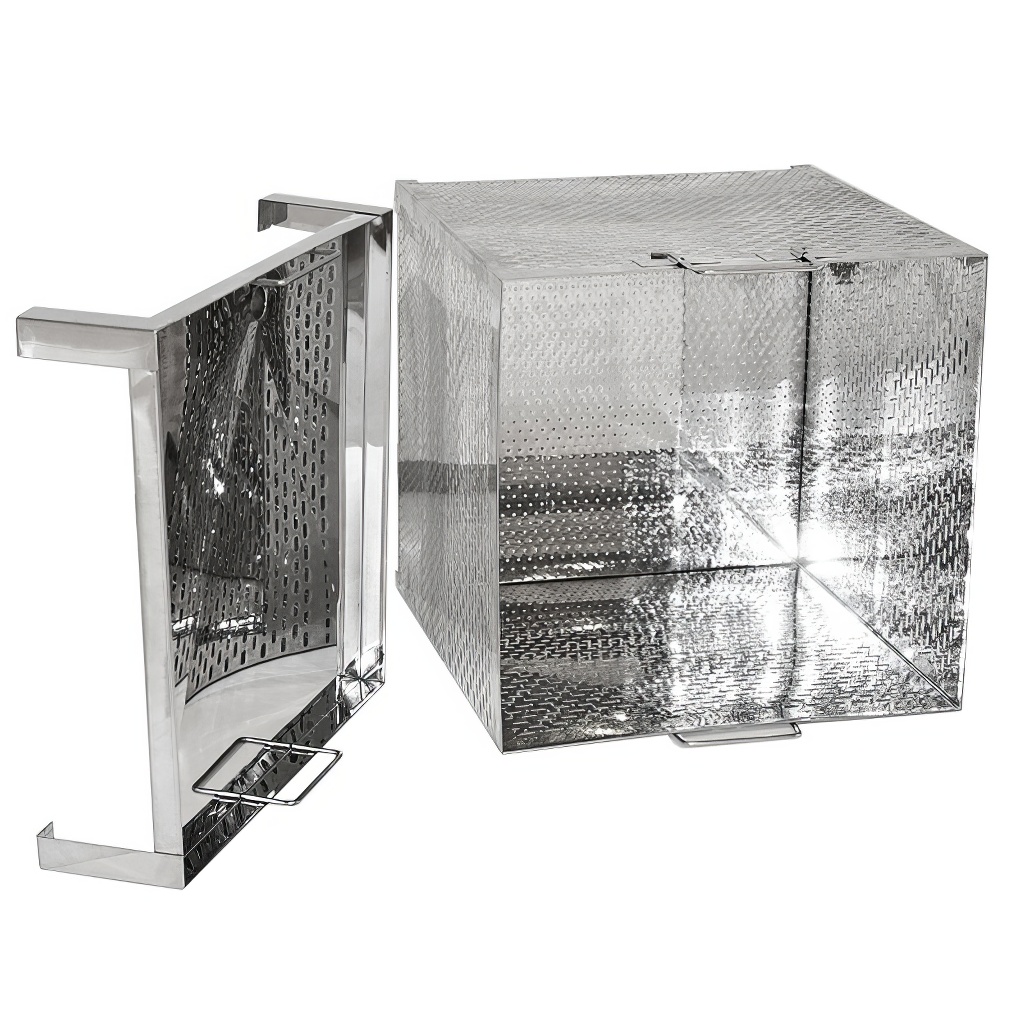 Dimensioni del cestello per telaini: lunghezza 450 mm, larghezza 450 mm, altezza 455 mm.