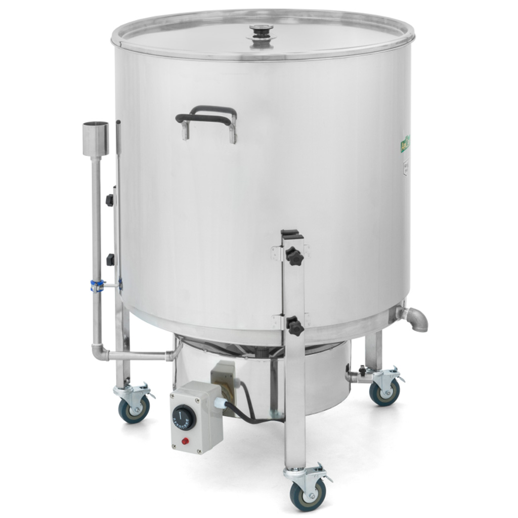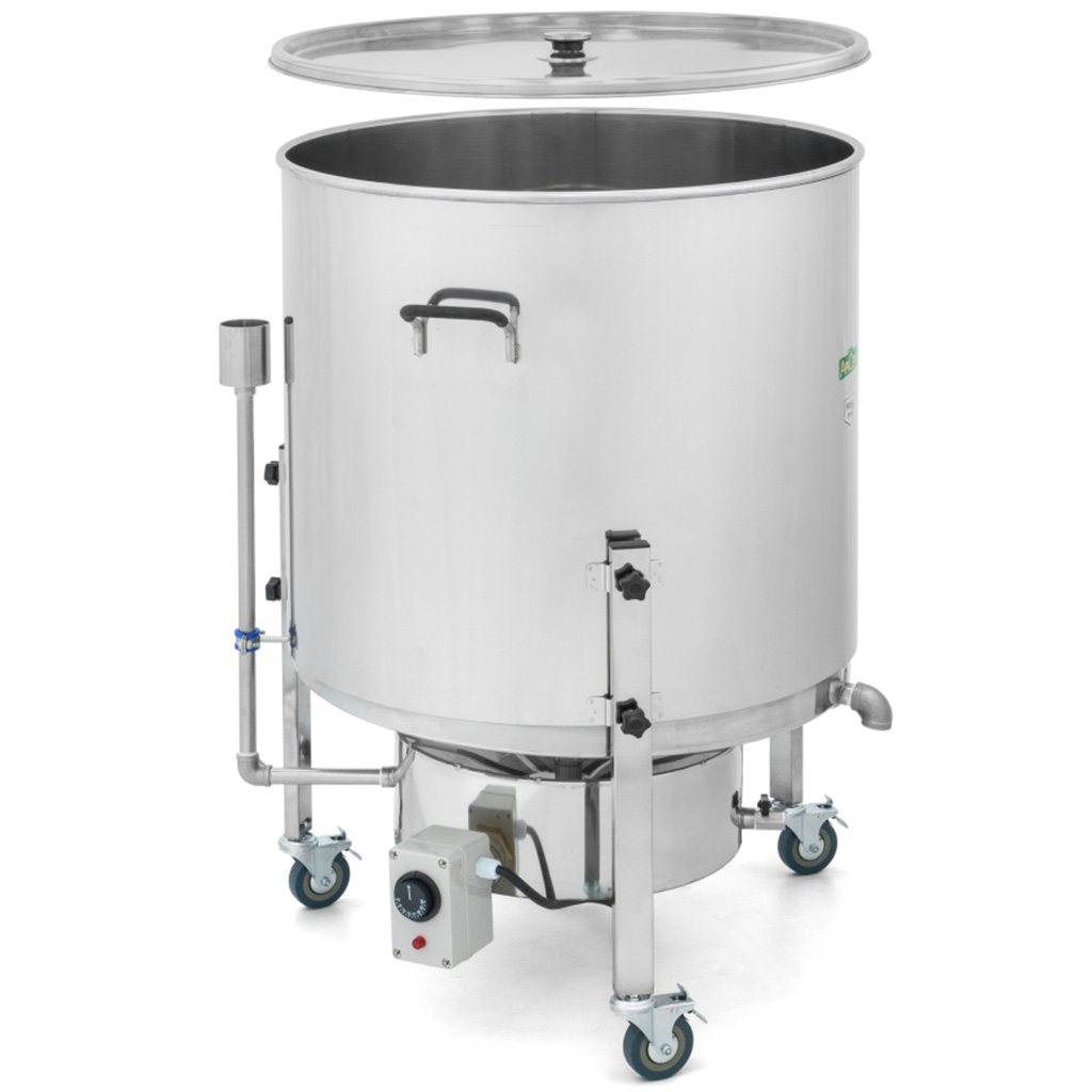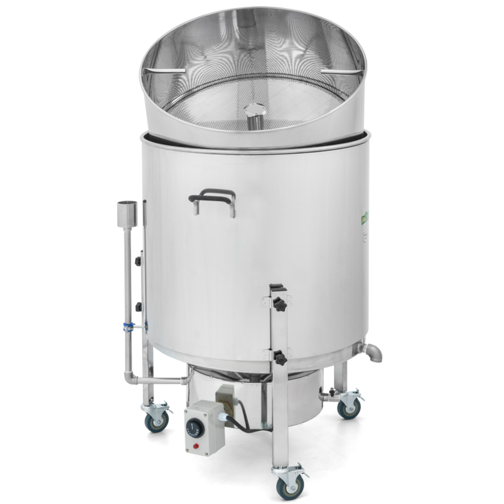 Accelerate e semplificate la lavorazione della cera d'api nella vostra pratica apistica con il potente fonditore a vapore ApiCera. È adatto sia per piccoli apiari che per aziende dove si fondono regolarmente grandi quantità di favi vecchi. La costruzione completamente in acciaio inox è progettata per una fusione rapida, pulita e affidabile della cera dai favi - con il minimo disordine e senza lunghe operazioni di pulizia dell'attrezzatura dopo ogni lotto. Il risultato è cera pulita pronta per ulteriori lavorazioni e per la produzione di fogli cerei.