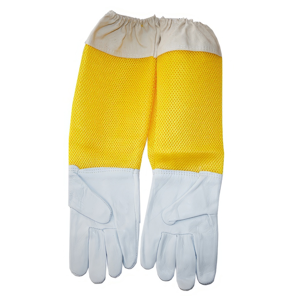Guanti da apicoltore in pelle con polsino traspirante, disponibili nelle taglie S-XXL, sono parte integrante dell'abbigliamento protettivo dell'apicoltore.