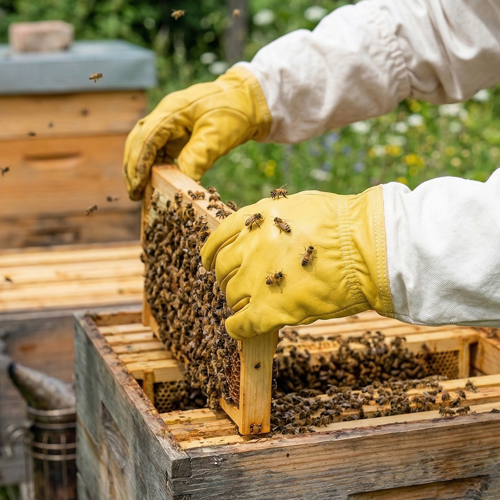 Durante l'ispezione delle famiglie d'api conta la calma, la sicurezza e il lavoro preciso. La pelle di capra è apprezzata dagli apicoltori proprio perché offre un equilibrio ottimale tra protezione e sensibilità di presa. Così potrete manipolare più facilmente e in sicurezza telaini, nutritori e melari, minimizzando al contempo il rischio di schiacciare involontariamente le api, cosa che spesso porta all'agitazione della famiglia. Il trattamento impregnante aiuta a mantenere i guanti più a lungo elastici anche lavorando in condizioni di umidità e ne melario la durata. I manicotti in cotone con bordo elastico inoltre coprono efficacemente l'avambraccio e riducono la possibilità che le api entrino sotto l'abbigliamento. Il risultato è un maggiore comfort e una maggiore concentrazione sul lavoro stesso presso l'arnia.
