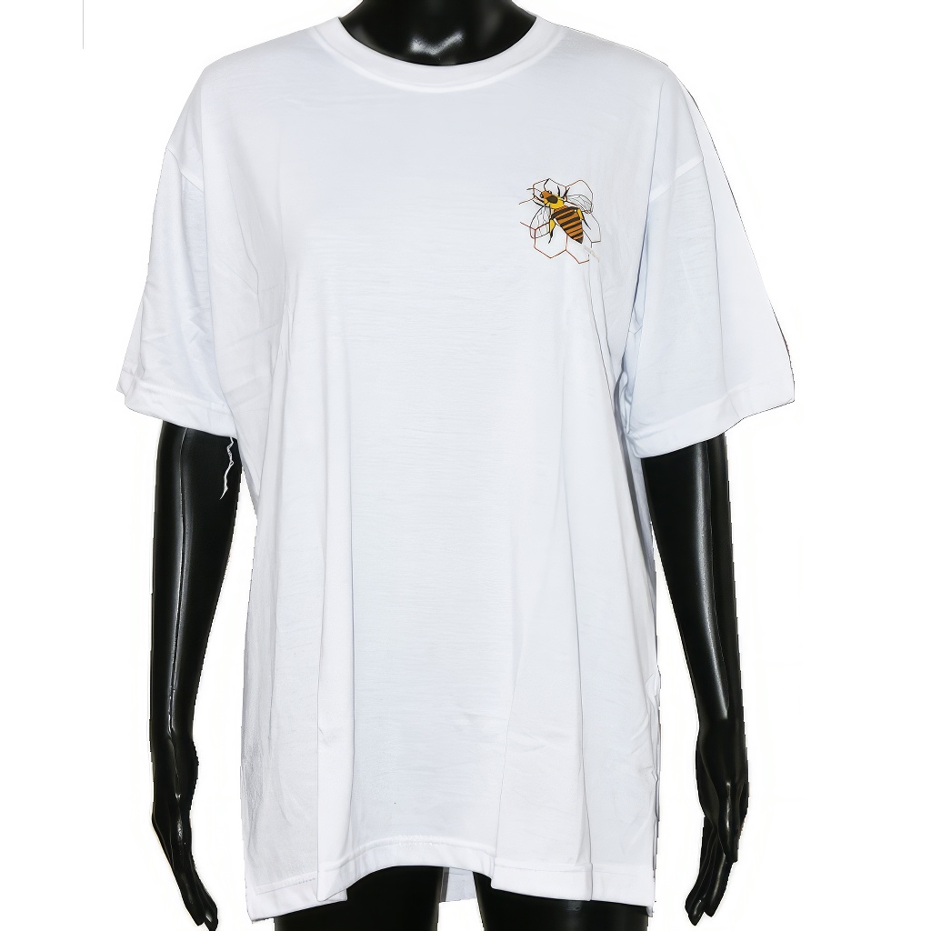 Realizzate in 100% puro cotone di qualità 180 g. Magliette bianche con scollo rotondo e stampa di api.