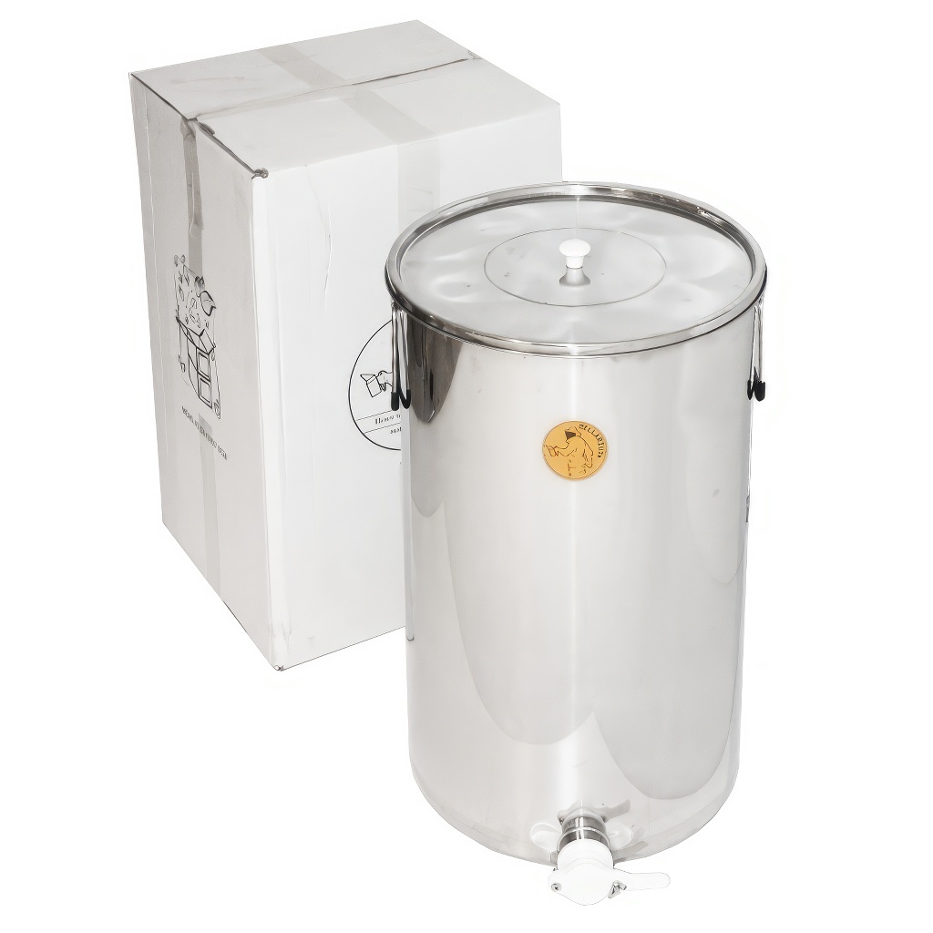 Contenitore inossidabile per invasettamento miele con valvola plastica 100 kg – Mellarius