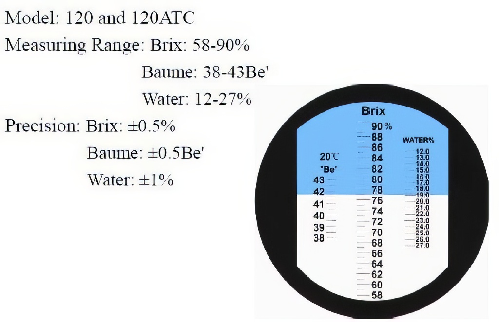 | Scala – acqua nel miele | Range 12 – 26 % (divisioni di 0,5 %) |