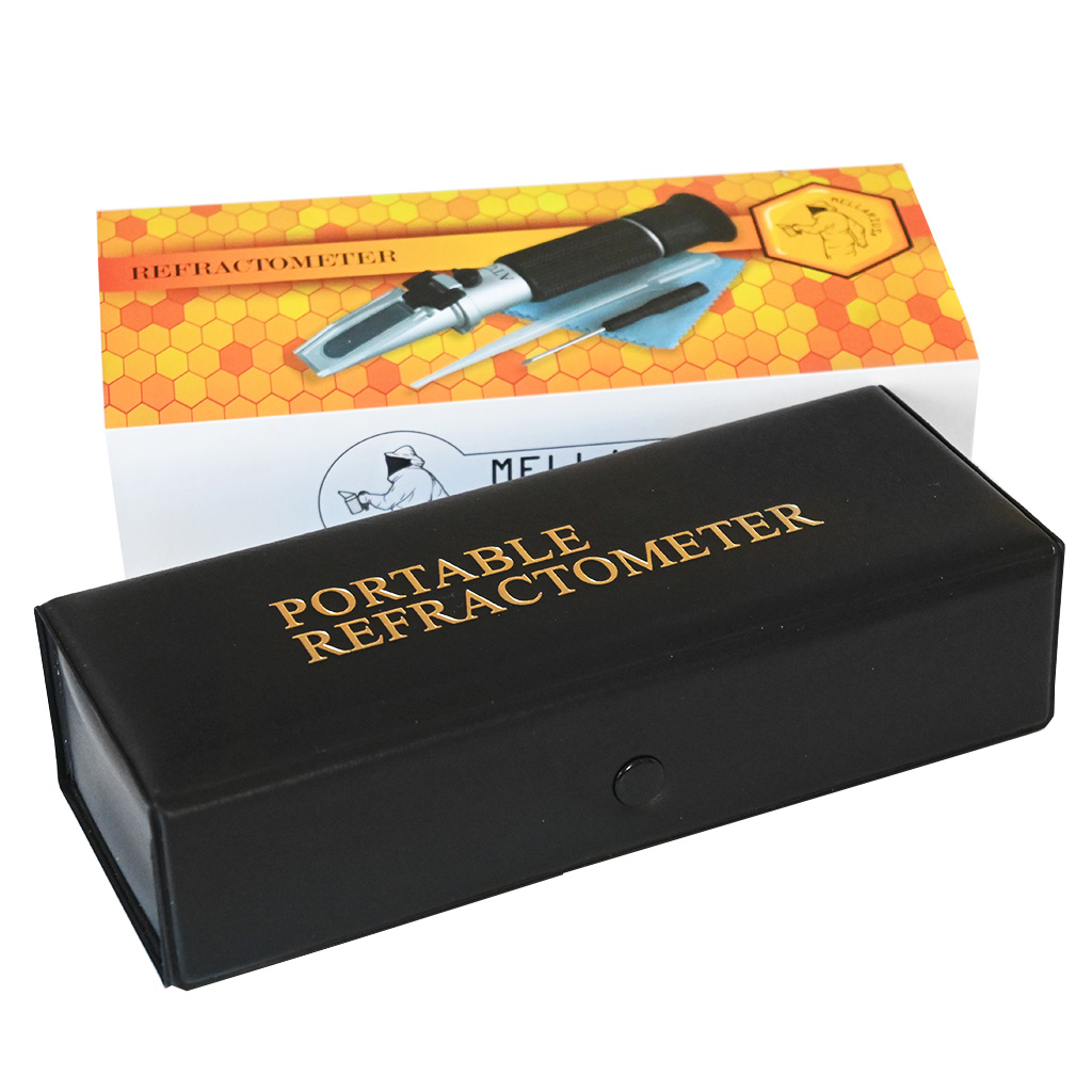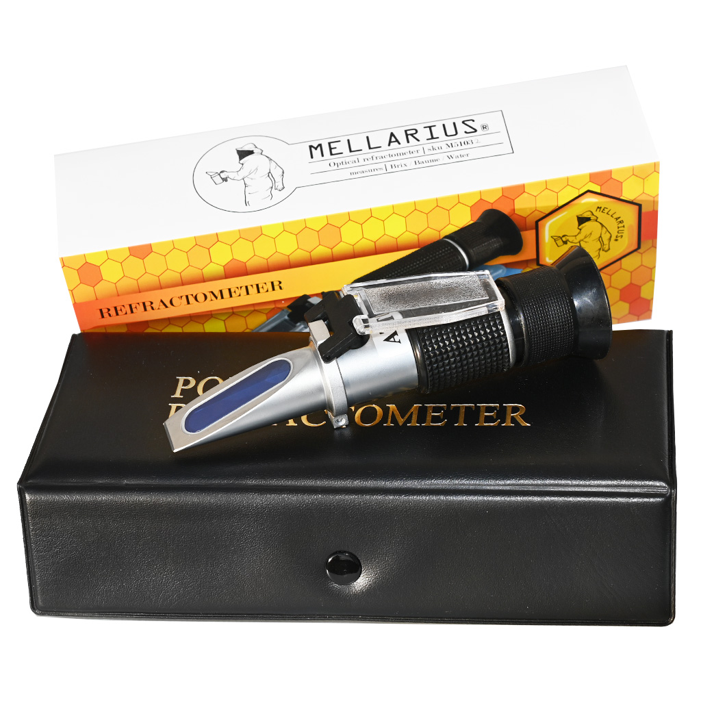 Questo rifrattometro è fornito dal rinomato specialista tedesco di attrezzature apistiche Mellarius. La denominazione „Plus" qui non è solo decorativa – si tratta di un'esecuzione più sofisticata con ottica di migliore qualità e corpo più resistente rispetto ai comuni modelli base.