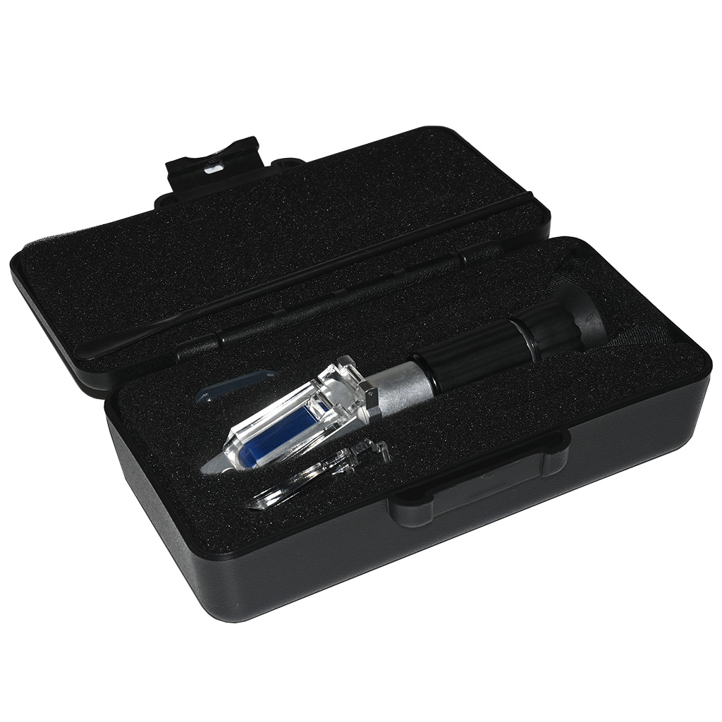 Questo strumento ottico funziona sul principio della rifrazione della luce e vi permette di ottenere il risultato in pochi secondi. Il rifrattometro è dotato di sistema di compensazione automatica della temperatura (ATC). Questo significa che non dovete ricalcolare i risultati in modo complesso o calibrare continuamente lo strumento con lievi cambiamenti di temperatura ambiente (ad esempio quando passate da un'officina fredda al caldo).