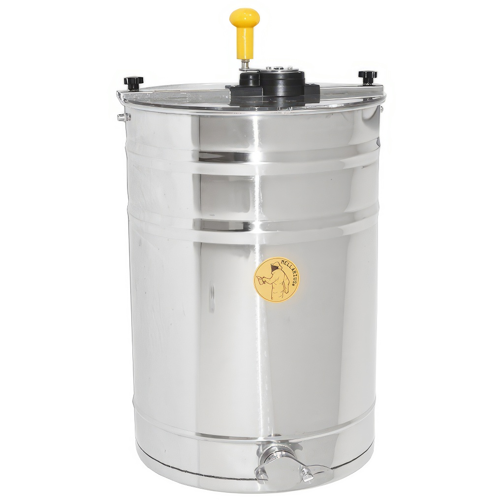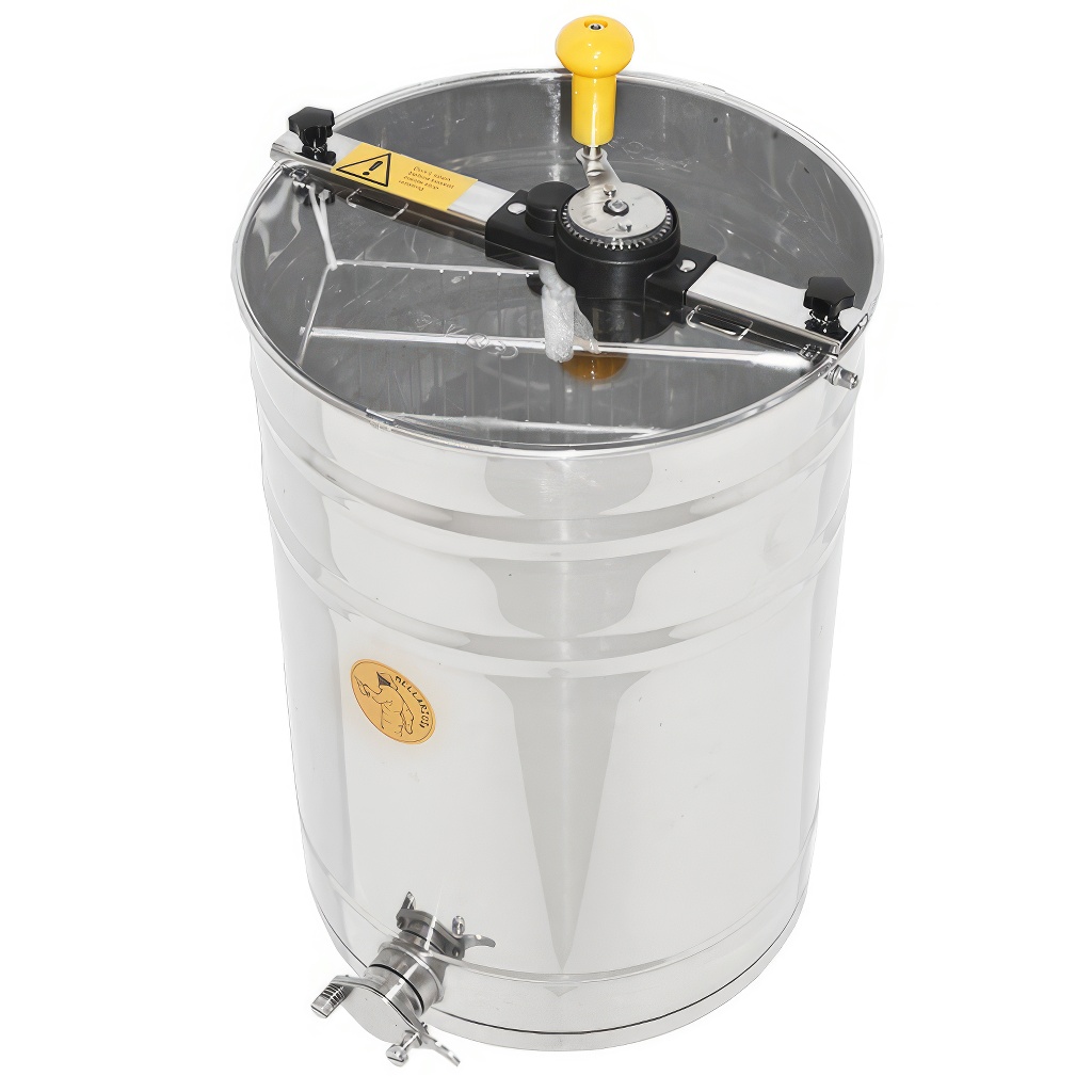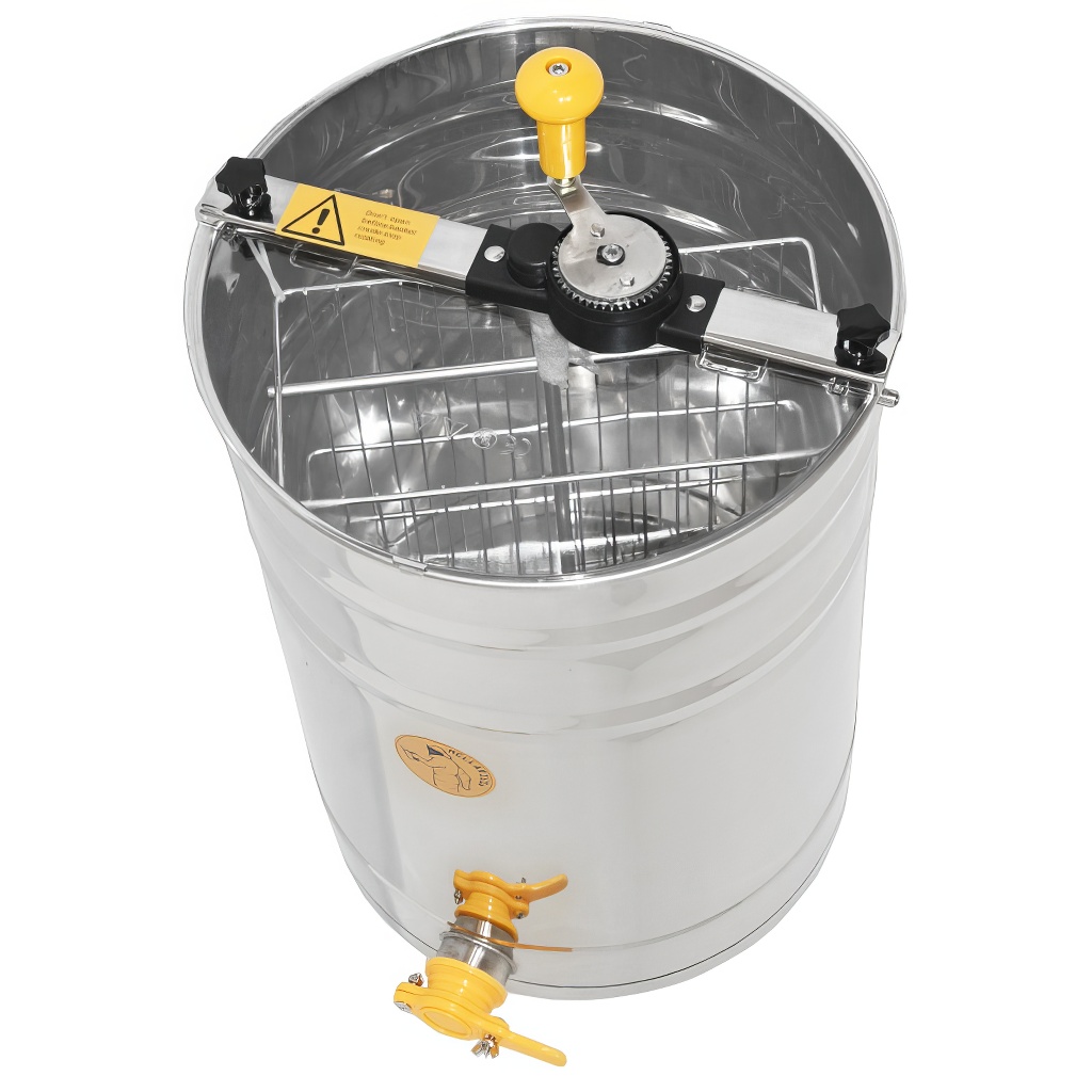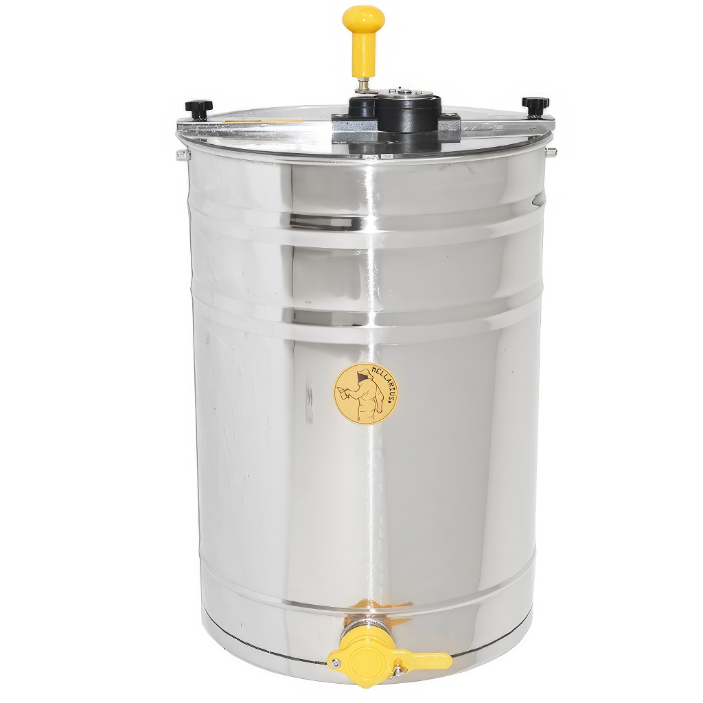 Smielatore tangenziale a due telaini con azionamento manuale. La larghezza del cestello è di 34 cm, lo smielatore è quindi adatto per la maggior parte dei telaini. Questi smielatori sono destinati agli apicoltori principianti, le cui esigenze per lo smielatore sono basse e quindi non vogliono investire troppi soldi nel suo acquisto.