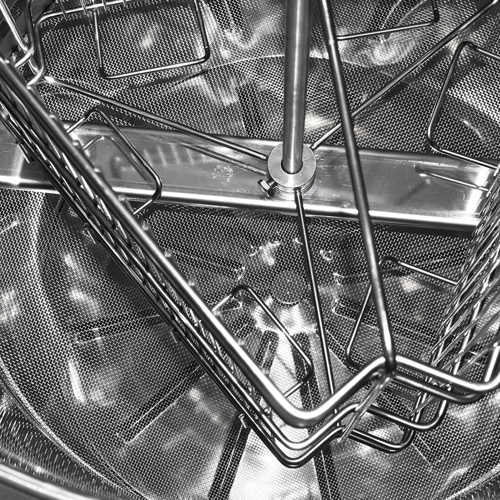 I cestelli degli smelatori sono realizzati con una rete più fitta di fili in acciaio inox, grazie alla quale la forza del favo durante l'estrazione è distribuita su un'area più ampia, evitando così che i fili taglino l'opera delle api. Per la produzione dei cestelli vengono utilizzate barre circolari resistenti alla torsione. Le superfici circolari senza spigoli vivi sono anche più facili da pulire.