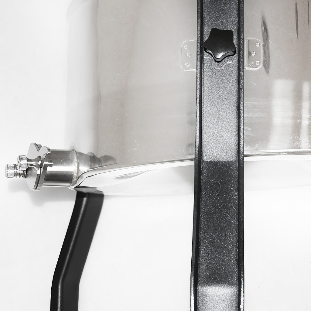 Innovativo è anche il sistema delle gambe, che sono disposte e fissate sullo smielatore in modo da raggiungere la massima stabilità. Le gambe sono realizzate in materiale massiccio e con il loro stesso peso contribuiscono alla stabilità durante l'estrazione. Grazie a un collegamento semplice ma solido, le gambe possono essere facilmente rimosse, rendendo l'intero smielatore molto più compatto e permettendovi di riporlo in sicurezza fino al prossimo utilizzo.