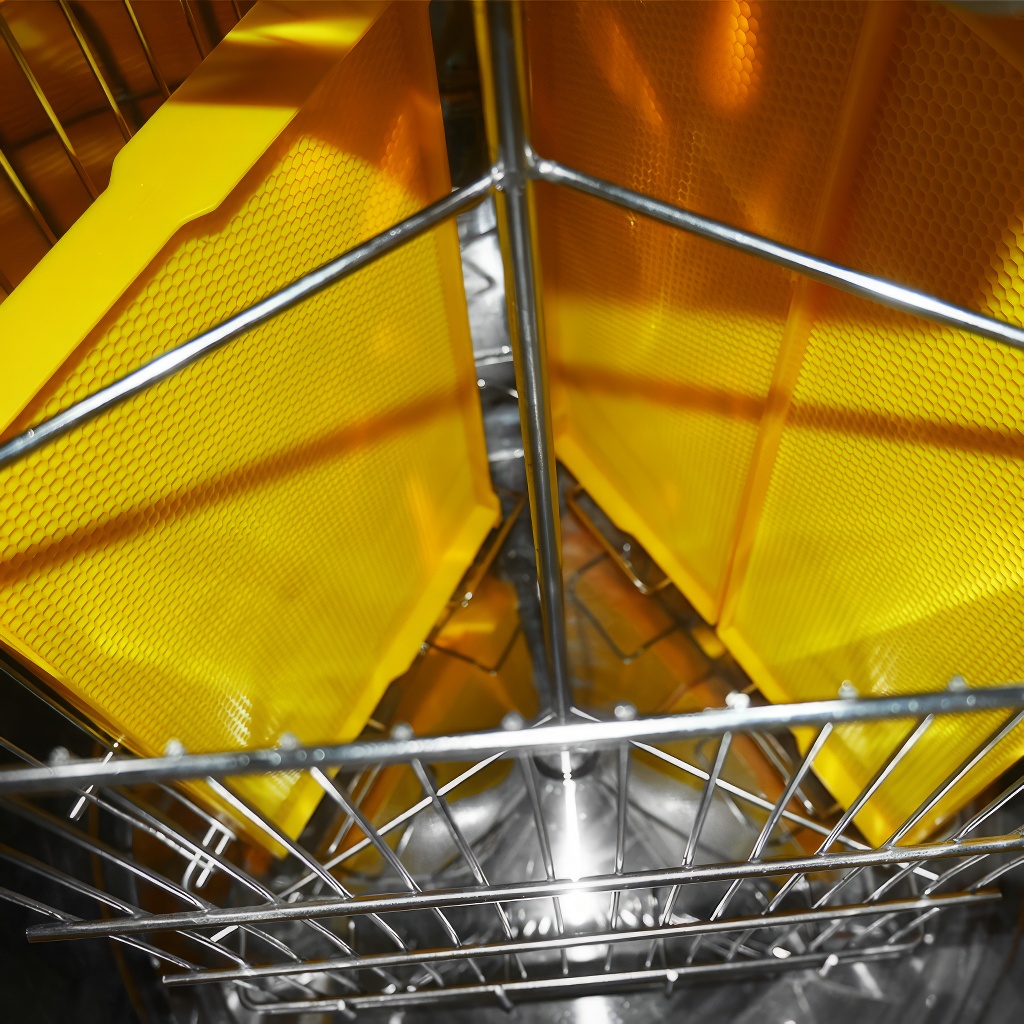 I cestelli degli smelatori sono realizzati con una rete più fitta di fili in acciaio inossidabile, grazie alla quale la forza del favo durante l'estrazione è distribuita su un'area più ampia, evitando così che i fili taglino l'opera delle api. Per la produzione dei cestelli vengono utilizzate barre circolari, resistenti alla torsione. Le superfici circolari senza spigoli vivi sono anche più facili da pulire.