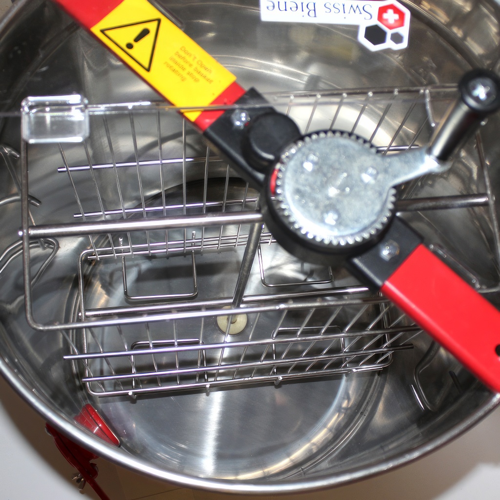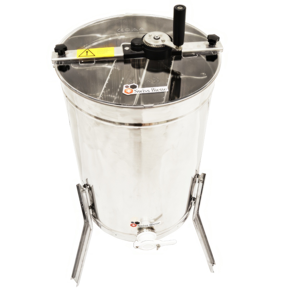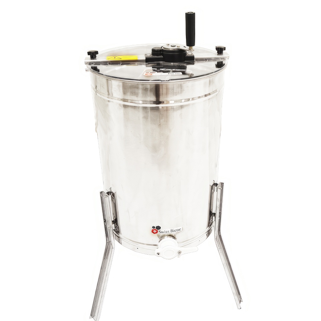 Estrattore di miele in acciaio inox di qualità con gambe per tutti gli "apicoltori amatoriali" che vorrebbero estrarre il miele con il proprio estrattore, ma non vogliono spendere molti soldi. L'estrattore è interamente in acciaio inox, progettato per due telai di dimensioni massime 30x46 cm. Una semplice manovella con trasmissione facilita l'estrazione. Il diametro del tamburo dell'estrattore è di soli 40 cm e l'altezza dell'estrattore è di 58 cm. Tra gli apicoltori, questo estrattore viene utilizzato anche come contenitore per la decantazione. Il cestello può essere facilmente rimosso dall'estrattore e il tamburo stesso può essere utilizzato come contenitore per il miele.