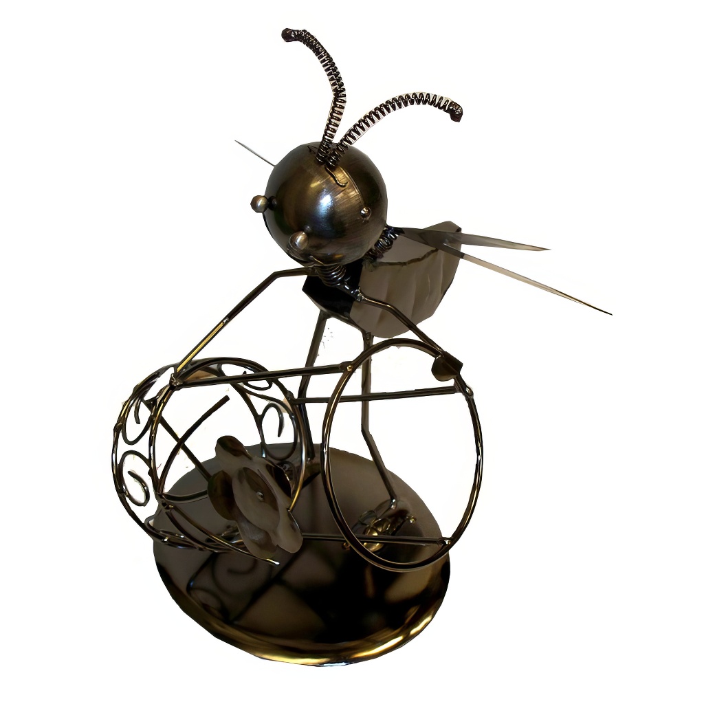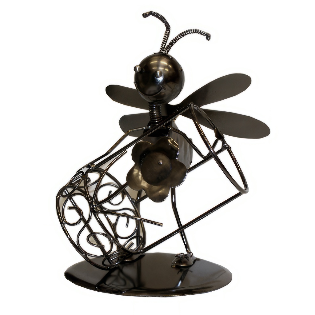 Portabottiglie decorativo in metallo con motivo apistico, destinato a bottiglie di vino, idromele o vasetti da mezzo chilo di miele.