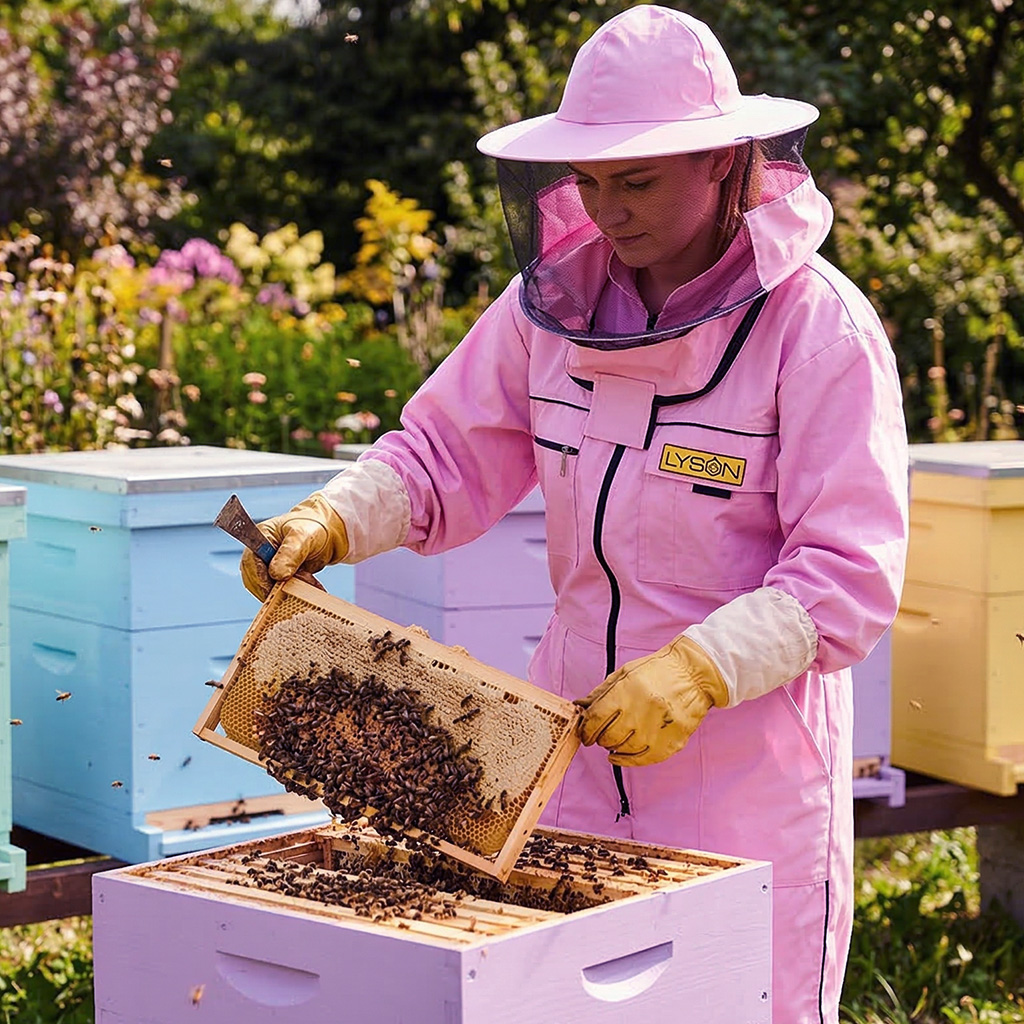 Durante le ispezioni delle famiglie di api, la smielatura e il lavoro quotidiano in apiario, è fondamentale mantenere la calma e la piena concentrazione. La tuta da apicoltore premium della collezione Color Line, nella versione viola, vi aiuterà a lavorare con sicurezza, senza inutili preoccupazioni per le punture. Il taglio è progettato per garantire libertà di movimento e un comfort di indosso piacevole anche nei mesi più caldi. Il colore viola ha un aspetto moderno e, allo stesso tempo, risulta meno irritante per le api rispetto ad alcune tonalità più vivaci, il che può contribuire a una manipolazione più serena presso le arnie. Il tessuto resistente ma leggero, con una grammatura di 185 g/m², offre un buon compromesso tra protezione e traspirabilità.