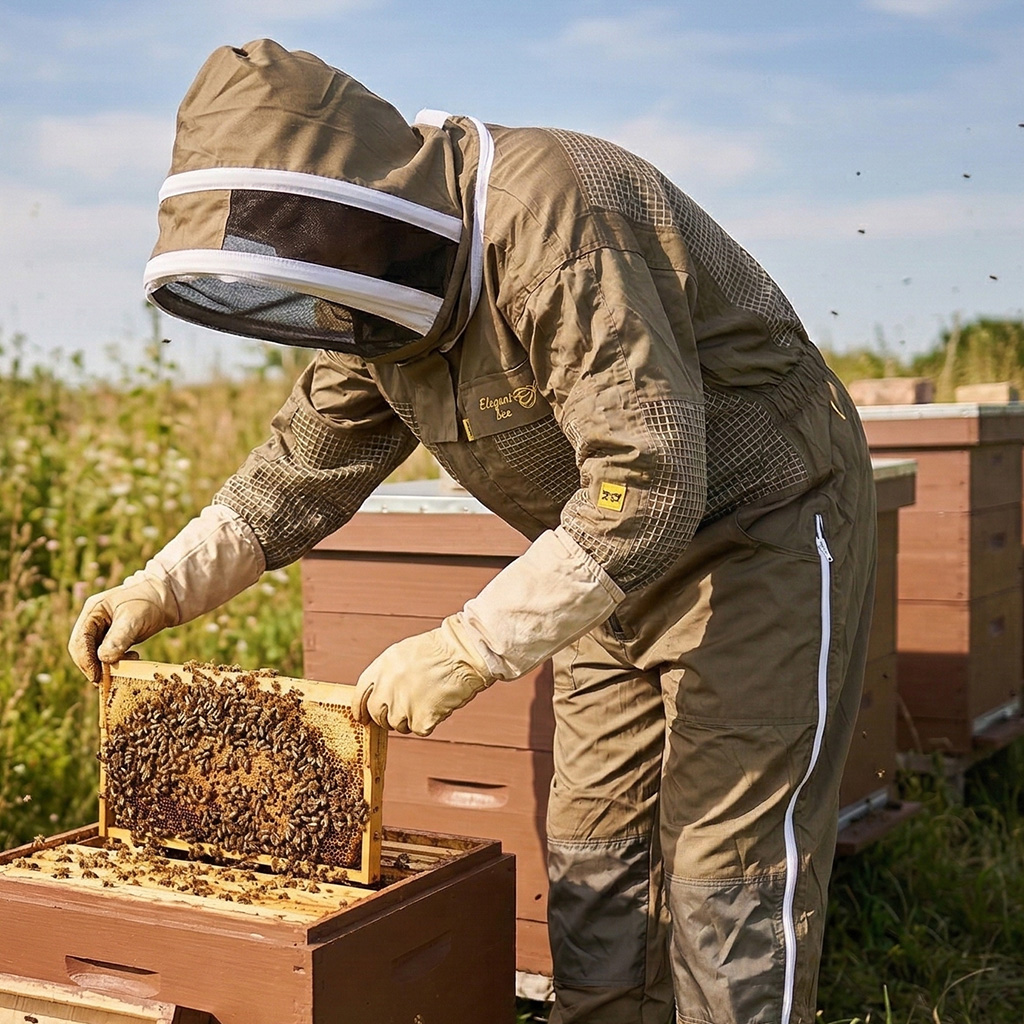 Per coloro che desiderano sentirsi non solo sicuri ma anche comodi durante l'apicoltura, sono progettate le tute protettive Mellarius con ventilazione (in questa versione con ventilazione parziale nella zona del petto e della schiena).