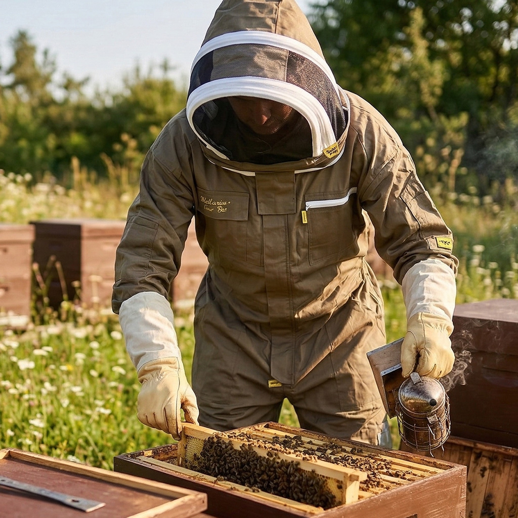 Tute protettive Mellarius di qualità e innovative, disponibili in versione casacca o tuta intera. Tutte le tute presentano numerosi miglioramenti che sono stati integrati nel processo produttivo dopo diversi anni di raccolta di feedback da parte degli apicoltori tedeschi. Le tute protettive risultanti sono il meglio che si possa attualmente trovare sul mercato dell'abbigliamento protettivo per apicoltori.