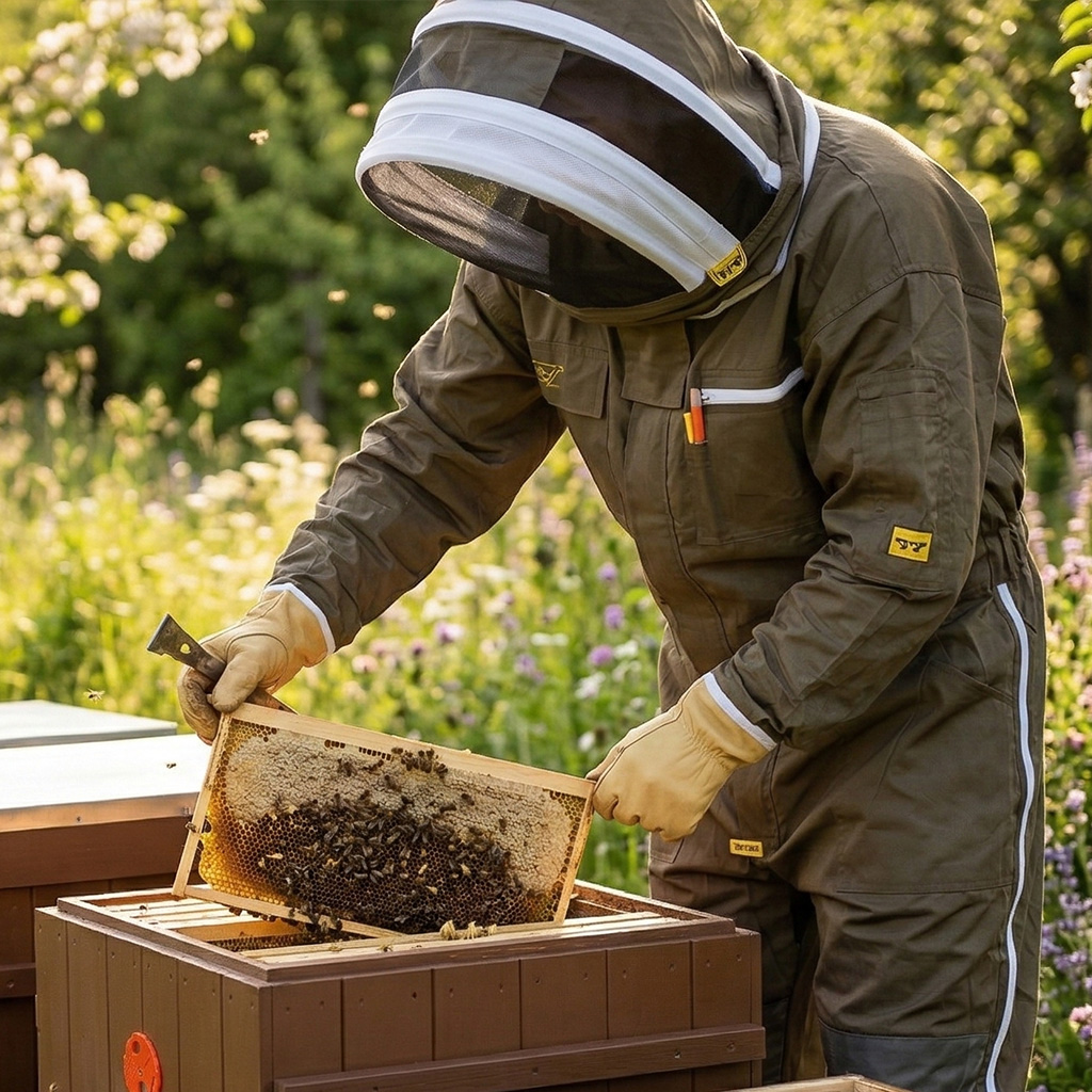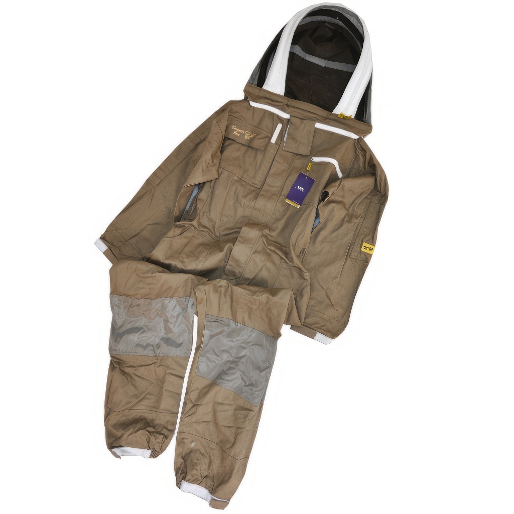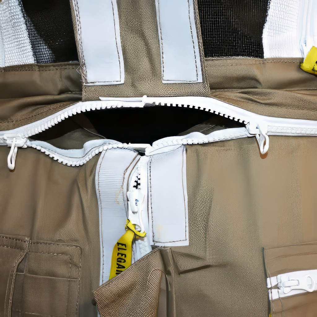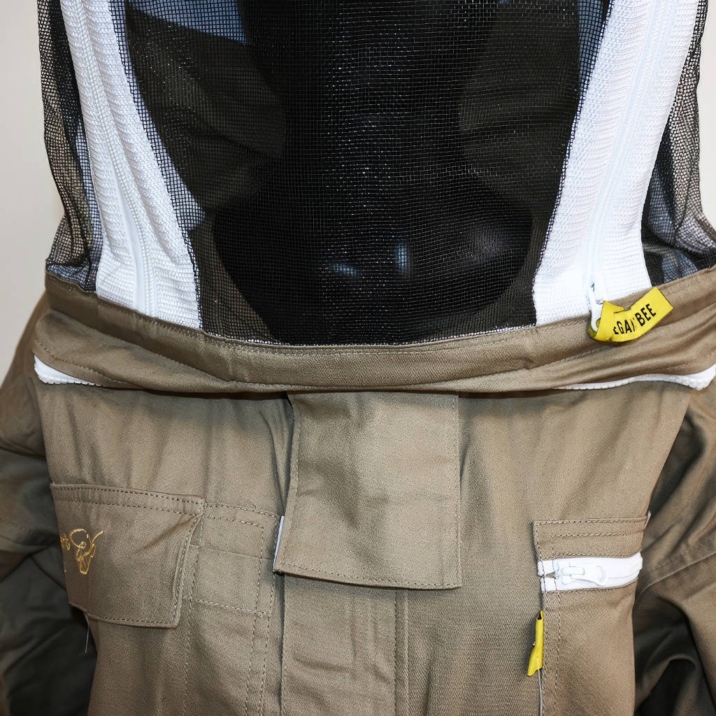 Tuta apistica con maschera per l'uso quotidiano in apiario. Queste tute presentano numerosi miglioramenti e rappresentano il meglio che possiamo offrirvi. Pratica tonalità kaki scuro, disponibile nelle taglie dalla S alla XXXXL. Realizzata con materiali resistenti che proteggono dalle punture d'ape.