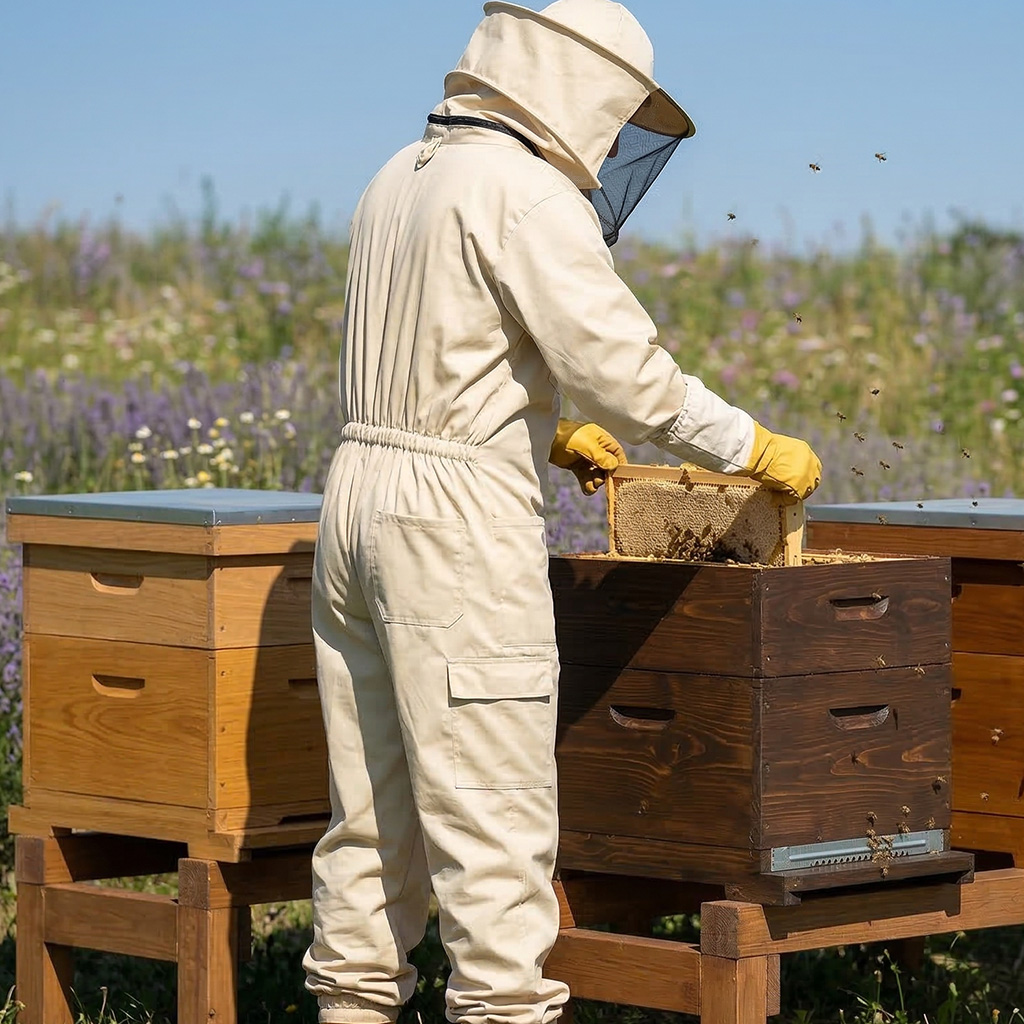 Hai bisogno di sicurezza e comfort durante il lavoro in apiario? La tuta da apicoltura apribile della linea OPTIMA Line con cappello rimovibile è una scelta pratica sia per i principianti che per gli apicoltori esperti. Il tessuto resistente e al tempo stesso traspirante e il taglio ben studiato garantiscono libertà di movimento durante la manipolazione di melari, telaini e durante il lavoro con i nuclei. L'obiettivo è uno solo: la massima protezione e tranquillità durante ogni ispezione della famiglia di api.