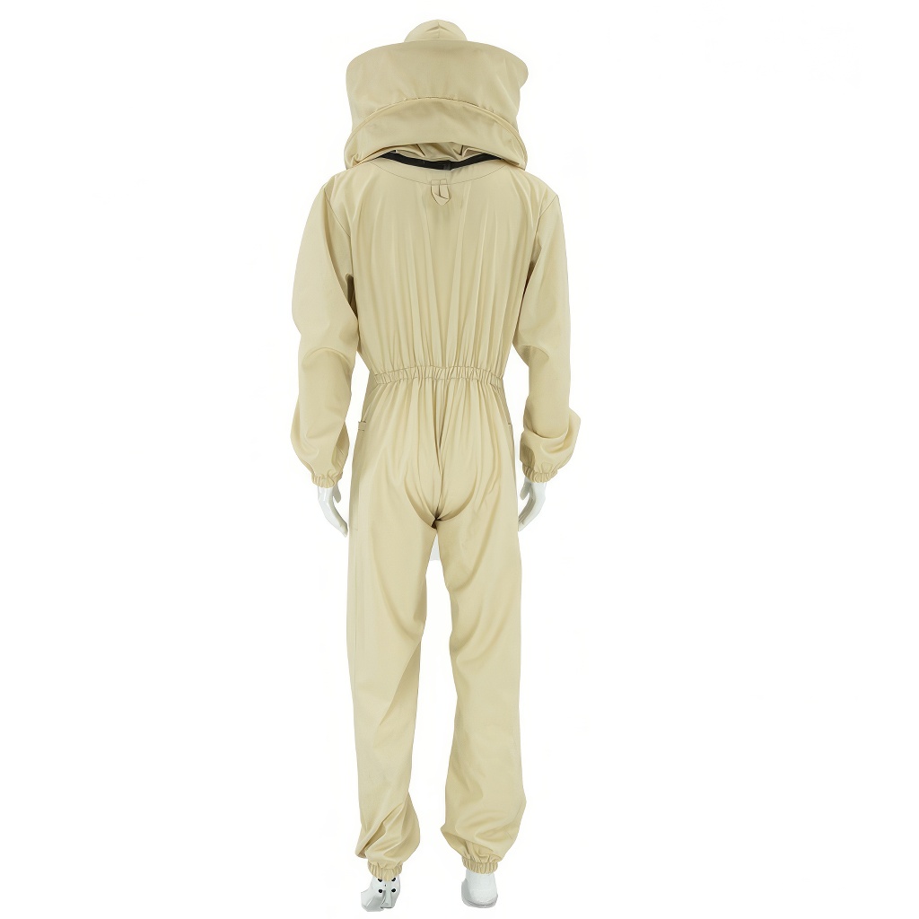 La tuta è realizzata in materiale composto da 65 % poliestere e 35 % cotone (la tonalità e la grammatura possono variare leggermente a seconda della fornitura in corso). Questa combinazione offre una buona resistenza, una facile manutenzione e una lunga durata con l'uso regolare in apiario. Il prodotto è coperto da una garanzia di 24 mesi.