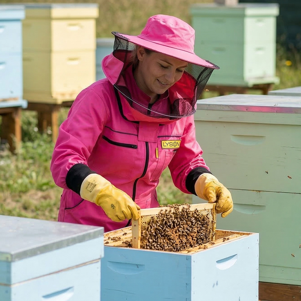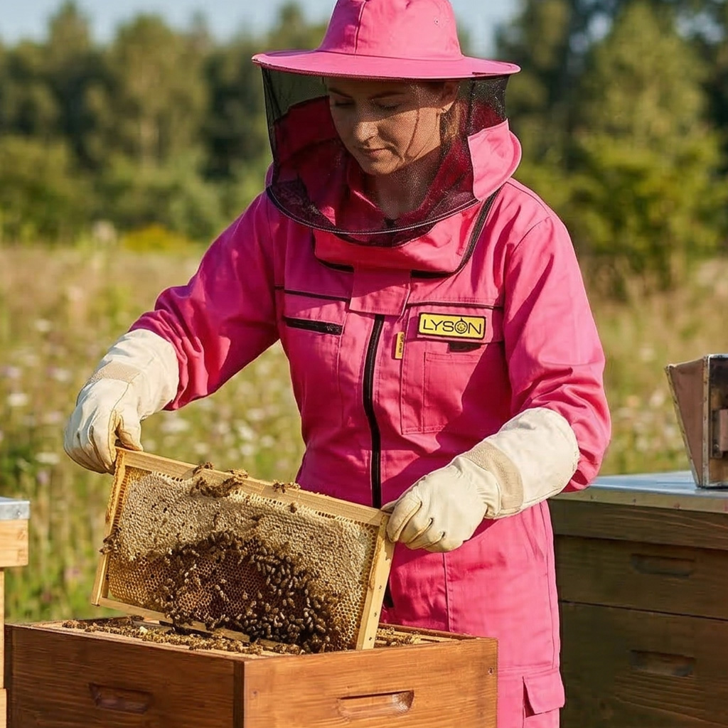 Desiderate la massima sicurezza, il comfort e al tempo stesso un aspetto originale durante il lavoro presso le arnie? La tuta da apicoltore rosa della linea PREMIUM LINE con cappello è pensata soprattutto per le apicoltrici che vogliono muoversi nell'apiario con sicurezza e senza inutili compromessi. La tuta aiuta efficacemente a ridurre il rischio di punture durante le ispezioni delle famiglie di api, non limita i movimenti e, grazie ai dettagli ben studiati, rende più piacevole ogni intervento sui telaini. È anche un'ottima idea regalo originale per un'apicoltrice che trascorre molto tempo con le api.